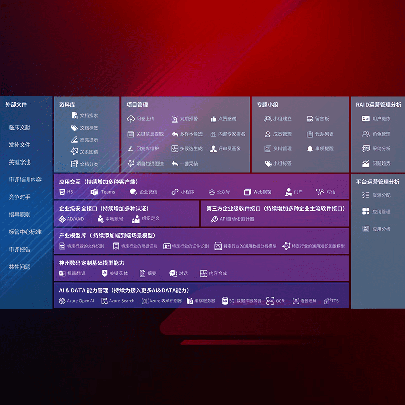 医疗器械产品上市前,,,,要熟悉严格与繁复评审标准,,整理分析监管机构指导文件中的海量信息。。。。企业急需一个智能化解决方案,,,,提升知识管理效率,,,,提高评审通过率,,,以提升其市场竞争力。。。。